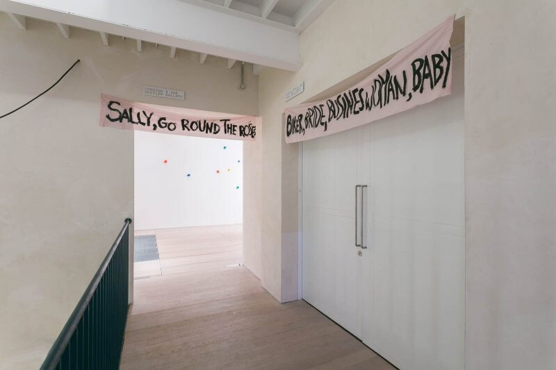 Moving from birth, in HOLY HELL O, through Sally, Go Round the Roses and finally to Biker, Bride, Builder, Businesswoman and Baby, the exhibition traverses our passage through life; a plunge into existence, a centrifuge of bristling energy, and final dissolution.